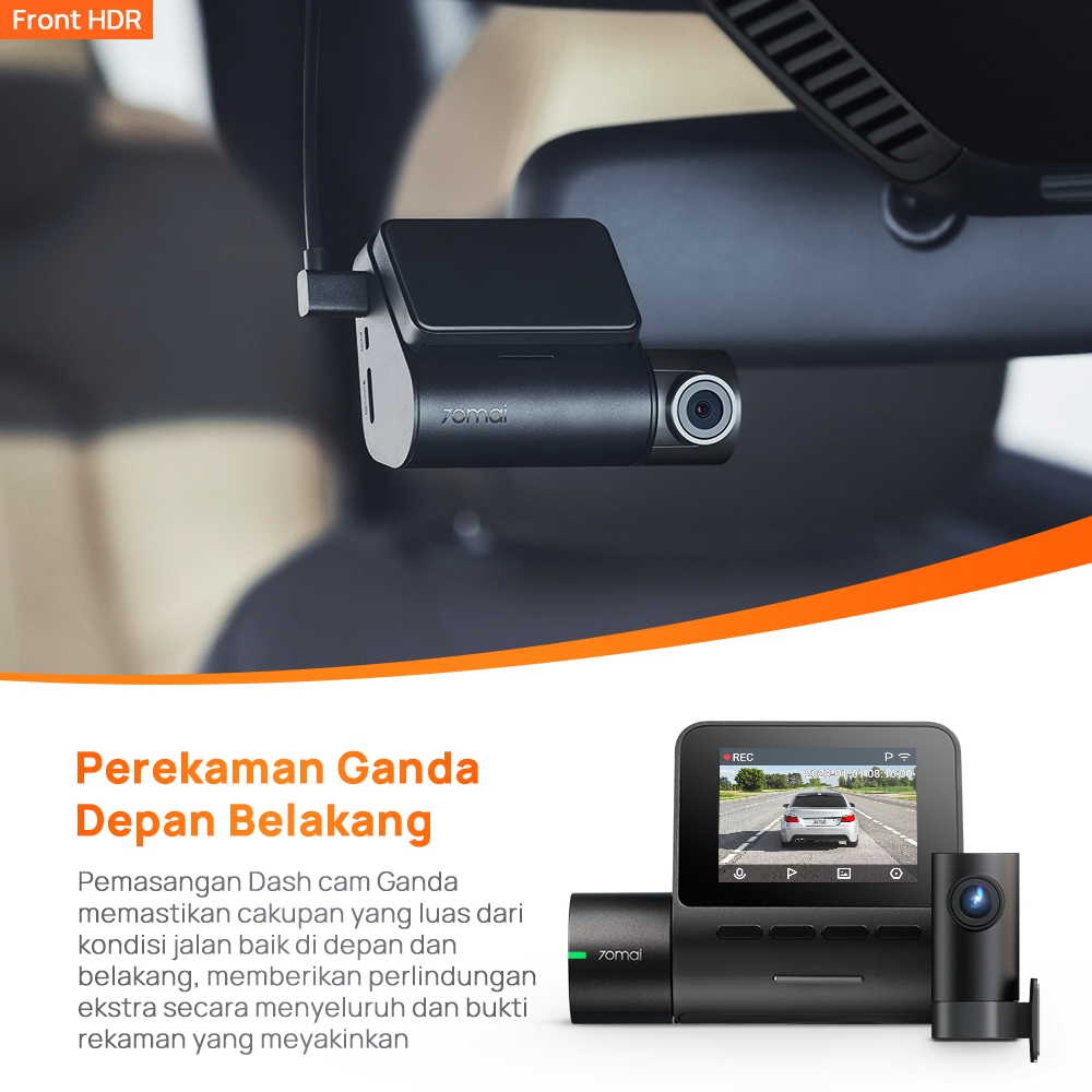 Dashcam 70mai A200 Set Dual-Channel memiliki pandangan untuk merekam bagian depan mobil dan juga bagian belakang (rekaman ganda depan belakang). Pada pengaturan kamera ganda memastikan cakupan kondisi jalan depan dan belakang, memberikan perlindungan ganda dan bukti visual yang meyakinkan dari kedua sisi kendaraan Anda. Dashcam ini juga dilengkapi dengan HDR, yang ditingkatkan oleh MaiColor Vivid+ Solution™️, menghadirkan transisi yang lebih mulus dan meningkatkan visibilitas elemen-elemen penting seperti rambu jalan dan pelat nomor, terutama dalam pemandangan cahaya yang menantang.